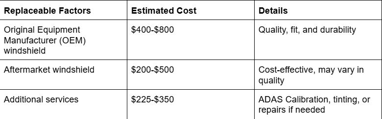 ADAS (Advanced Driver Assistance Systems), a recalibration is required to ensure all safety features work correctly with the new windshield. This additional service typically costs between $225 and $350, depending on the system’s complexity.
